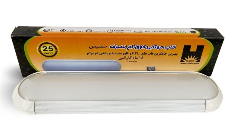 قاب مهتابی یا همان براکت 25 وات حسیس، جایگزینی بسیار مناسب برای لامپ های FPL و فلورسنت بوده به گونه ای دارای نوردهی در حدود دو برابر آن ها میباشد. نور این وسیله از طریق برد ال ای دی که در قسمت زیرین طلق چراغ قرار دارد تامین میشود. وجود همین ال ای دی باعث میشود که براکت 25 وات حسیس علاوه بر کم مصرف بودن، نور بیشتری را نیز ارائه دهد. میزان نور تولیدی این چراغ ال ای دی 6000 لومن اندازهگیری شده است. از دیگر ویژگی های مهم این لامپ، طول عمر بالای آن است. 30 سانتی متر طول و 8 سانتی متر عرض، از ویژگی های ظاهری این نوع قاب است.
